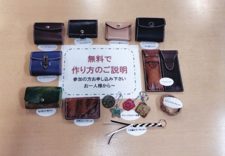 無料で、身近な作品の作り方が勉強できます。小銭入れ、ニュー財布、名刺入れ、ペンケースなど
