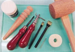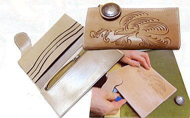 革の選び方、型デザイン作り方、裁断、縫い、染色